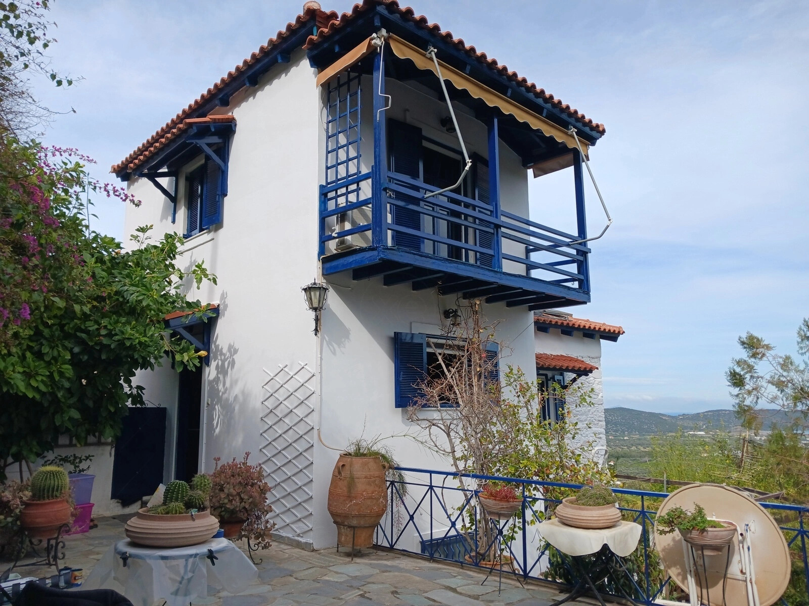 Einfamilienhaus ist front-layout Bietet an schoen auf das Meer, auf den Berg, beinhaltet auch Moebel, Solarwarmwasserbereiter, Kamin, Klimaanlage, Markisen, Pool, Parkplat, Garten, Rasen, Grill, Heizung, Abstellraum.